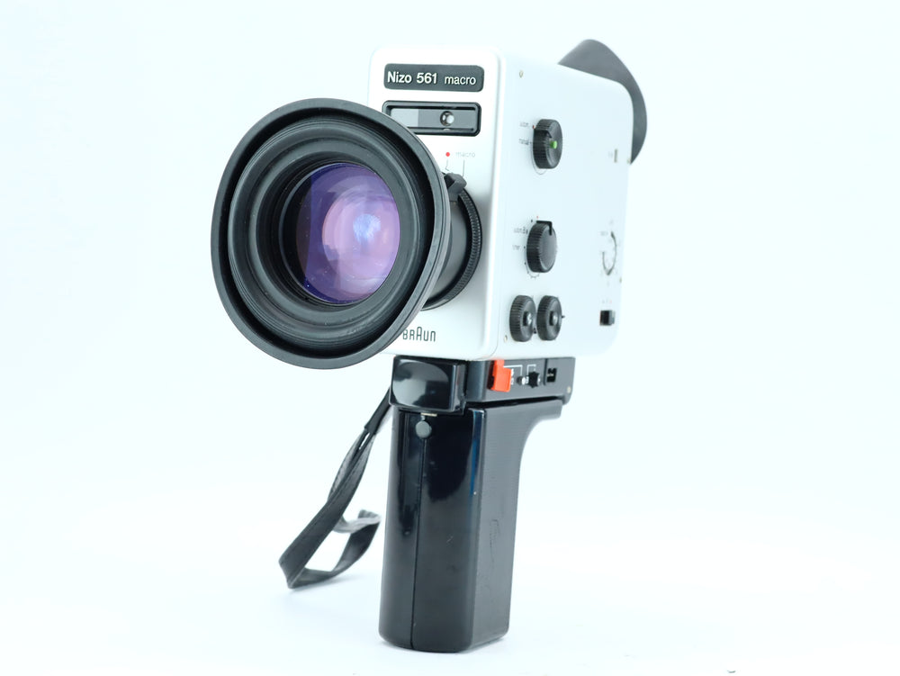 The Braun Nizo 561 Macro is a high-quality Super 8 film camera from the renowned German brand Braun. Known for its sleek Bauhaus-inspired design and advanced optics, this camera is a favorite among film enthusiasts and analog filmmakers. With its built-in macro function, quiet motor, and advanced exposure controls, the 561 Macro is ideal for creative close-ups and cinematic projects.