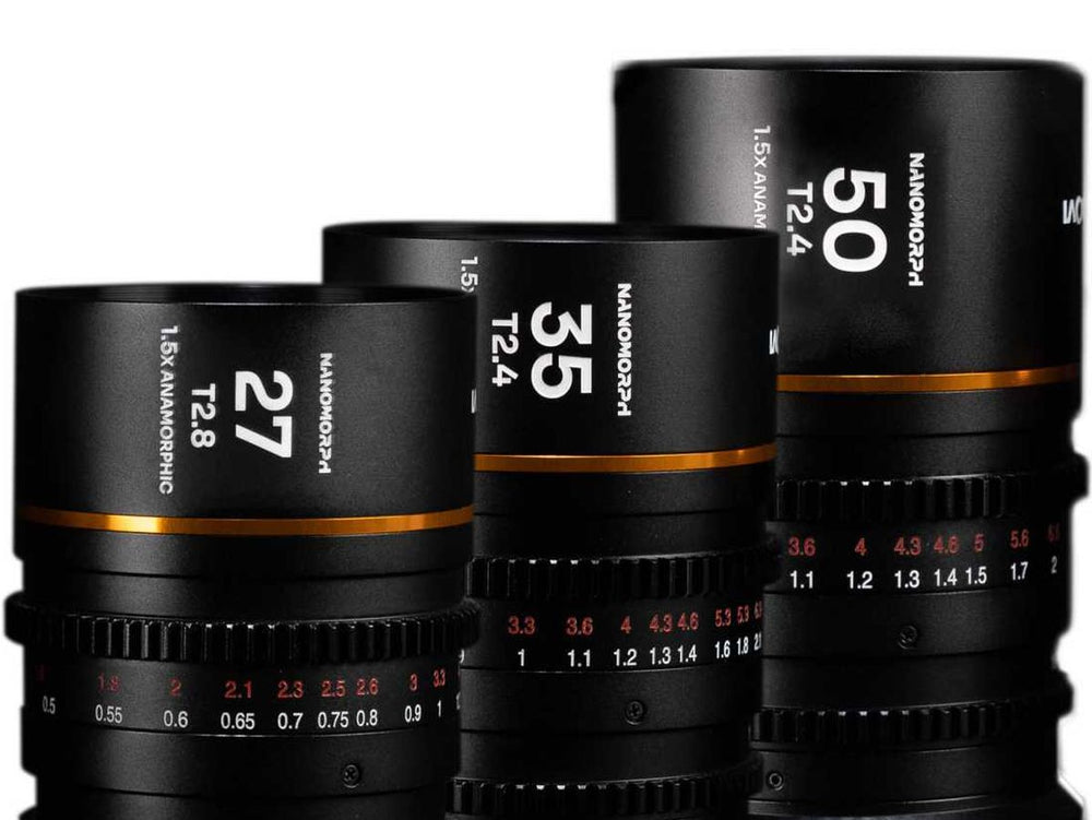 This set features three Laowa Nanomorph lenses: the 27mm, 35mm, and 50mm. Specifically designed for Super35 sensors, these compact, anamorphic lenses each weigh under 390 grams. They offer a constant 1.5x anamorphic squeeze, ensuring mumps-free imagery while maintaining anamorphic characteristics. The short focus distance provides ample room for composing different shots. These lenses come in three flare options: amber, blue, and silver - our amber version creates a warm atmosphere, excellent for narrative images and day/night shooting.