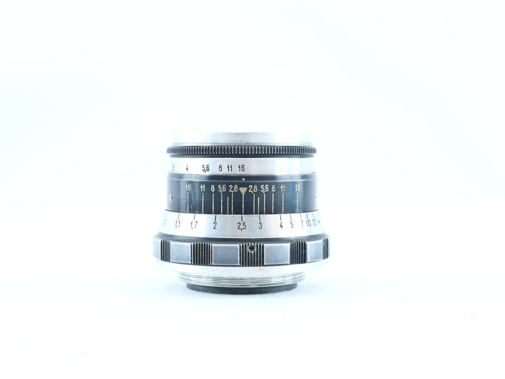 This L/D-type Industar is known for its sharp Tessar-derived optical formula, high contrast, and surprisingly good performance despite its compact size.