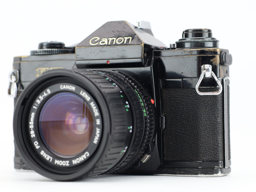 - عدسة تكبير مرنة: توفر عدسة FD 28-55mm f/3.5-4.5 نطاقًا متعدد الاستخدامات للطول البؤري، وهو مثالي لاحتياجات التصوير الفوتوغرافي اليومية.