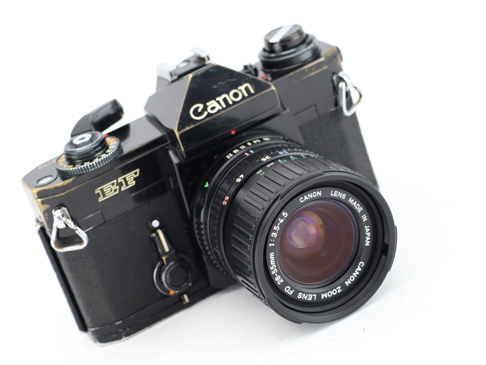 تعد كاميرا Canon EF كاميرا SLR قوية بفيلم مقاس 35 مم تجمع بين الميزات الكلاسيكية للتحكم اليدوي وسهولة التعريض التلقائي. تم طرح كاميرا Canon EF في منتصف سبعينيات القرن العشرين، وسرعان ما اكتسبت سمعة طيبة بفضل موثوقيتها وسهولة تشغيلها. يسمح وضع التعريض التلقائي لتفضيل الغالق في الكاميرا للمصورين باختيار سرعة الغالق المرغوبة بينما تضبط الكاميرا تلقائيًا فتحة العدسة للحصول على التعريض الصحيح. بدلاً من ذلك، يتوفر التحكم اليدوي الكامل لأولئك الذين يفضلون ضبط سرعة الغالق وفتحة العدسة يدويًا.