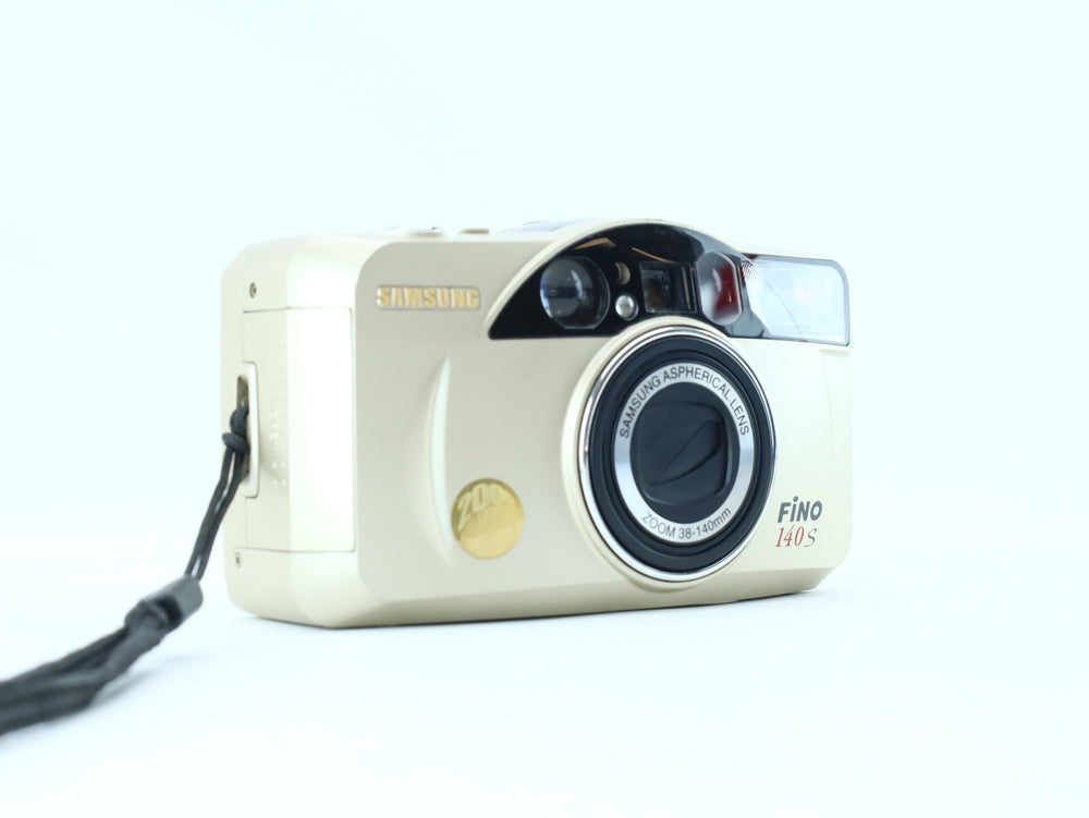 The Samsung Fino 140S is a versatile 35mm compact autofocus camera featuring a powerful 38–140mm zoom lens.