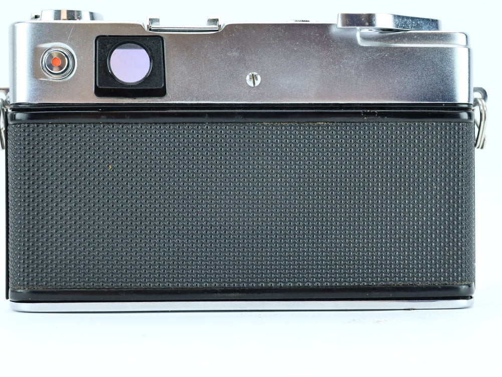 A solid 1960s rangefinder with sharp optics and a built-in light meter.