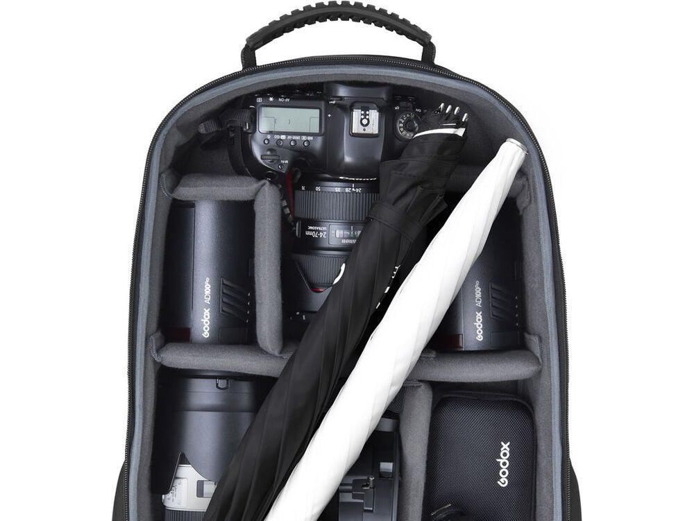 An exquisite collection of flashlights, batteries, chargers, cables, umbrellas and more - the Godox AD100Pro Triple kit is a must-have for professional photographers on-the-go. The Godox Witstro AD100 Pro Pocket flashlight stands out with its extreme compactness and feather-light weight, making it an ideal companion for location-based photoshoots.
