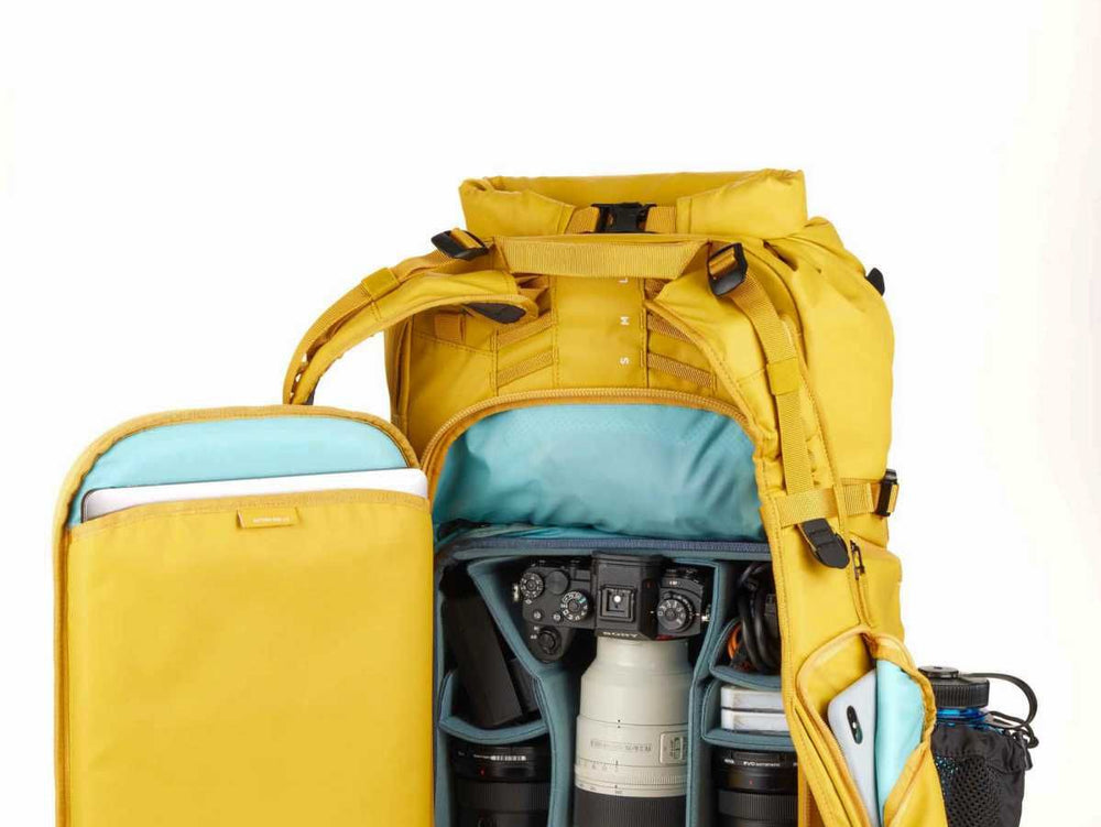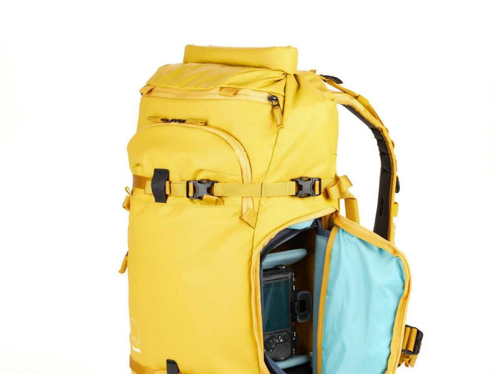 The Shimoda Action X30 V2 Backpack, in an eye-catching shade of yellow, is a delight for outdoor photographers. Designed to withstand a range of weather, it not only retains the excellent features of the first series but also adds a range of new extras to ramp up your experience. This sturdy backpack from the Action X series, with its 30 litre capacity, has ample space to accommodate a system camera, various (smaller) lenses, and accessories.