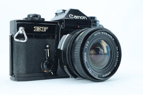 The Canon EF (1973) is a robust mechanical 35mm SLR film camera from Canon, manufactured in Japan. Known for its solid build and dependable operation, the Canon EF offers fully manual control with a built-in light meter, appealing to photographers who value a classic, hands-on shooting experience.