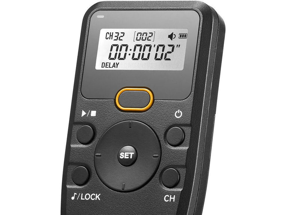 The built-in exposure timer, shutter delay feature, and a selection of four interval settings on the transmitter provides flexibility for capturing beautiful scenes in various light settings.