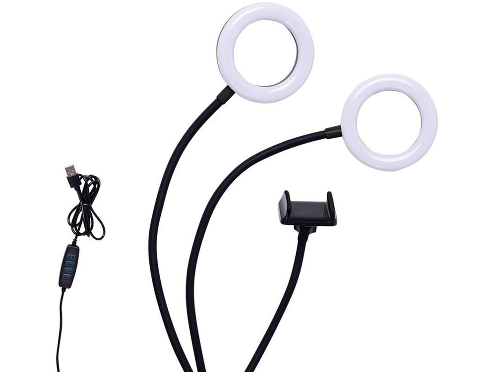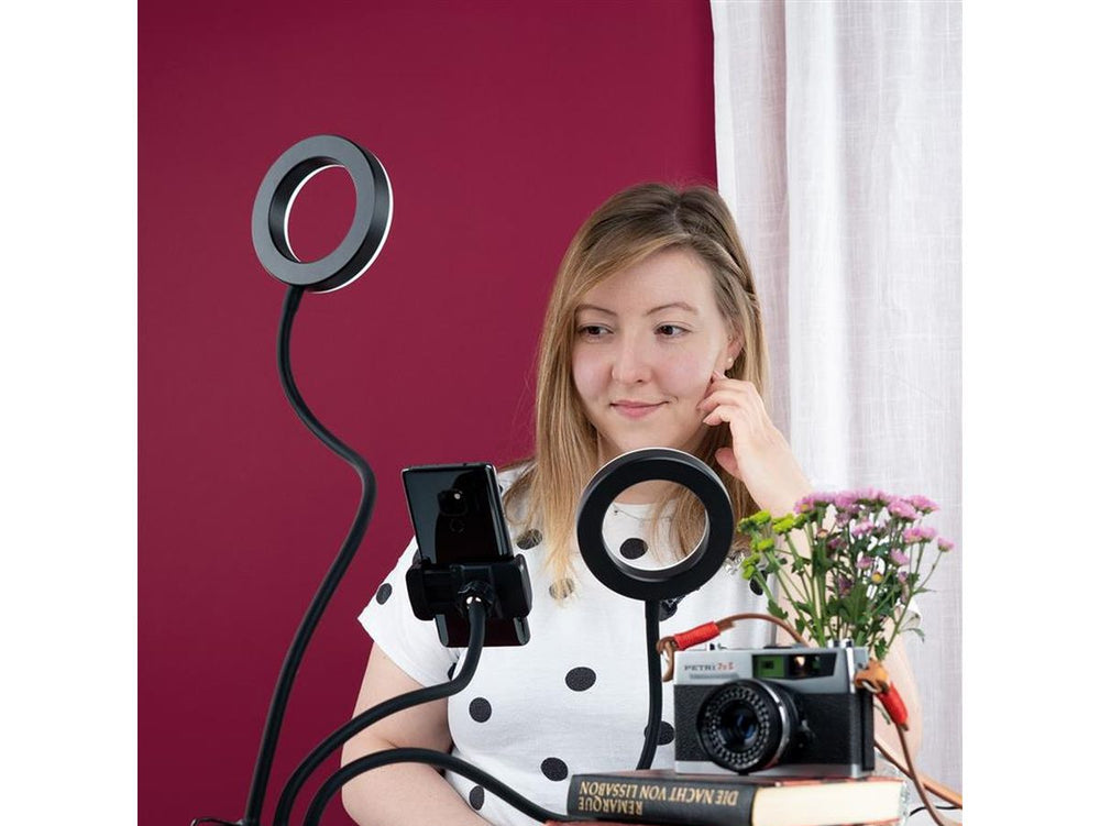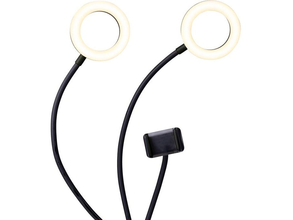 The Dörr Smartphone LED Selfie Ring Light SLR-12 is designed to brighten up your photos and videos. This top-tier LED selfie ring light comes with a pair of ring lights and a smartphone holder. The flexible arms allow you to adjust and position the light to suit your needs.