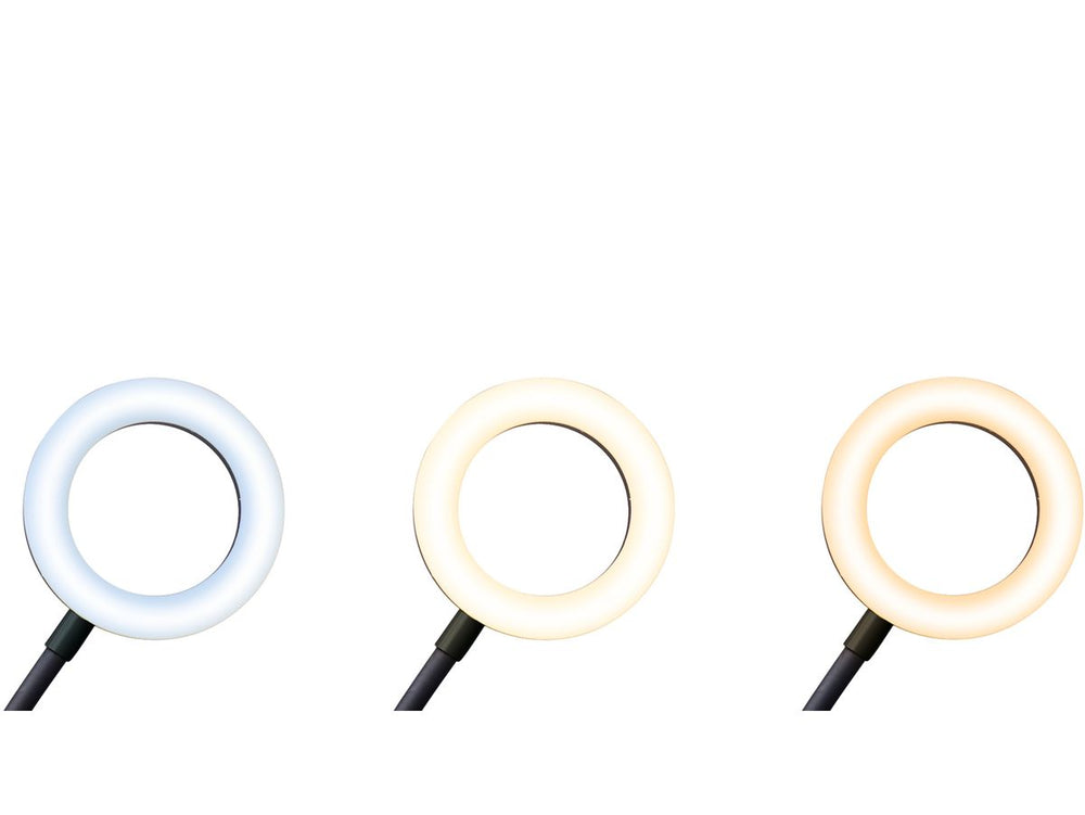 Each ring light is 12 cm in diameter and equipped with 40 LED lights, half of which are cold white, and the other half is warm white. These LED lights can be set in three varying light modes: warm light of 3800K, mixed light of 4500K, and cold light of 6800K. There's also an option to manually adjust the brightness level in 10 steps. With these features, you can have the most optimum lighting for any situation - selfies, tutorials, product photoshoots, and even for team meetings.