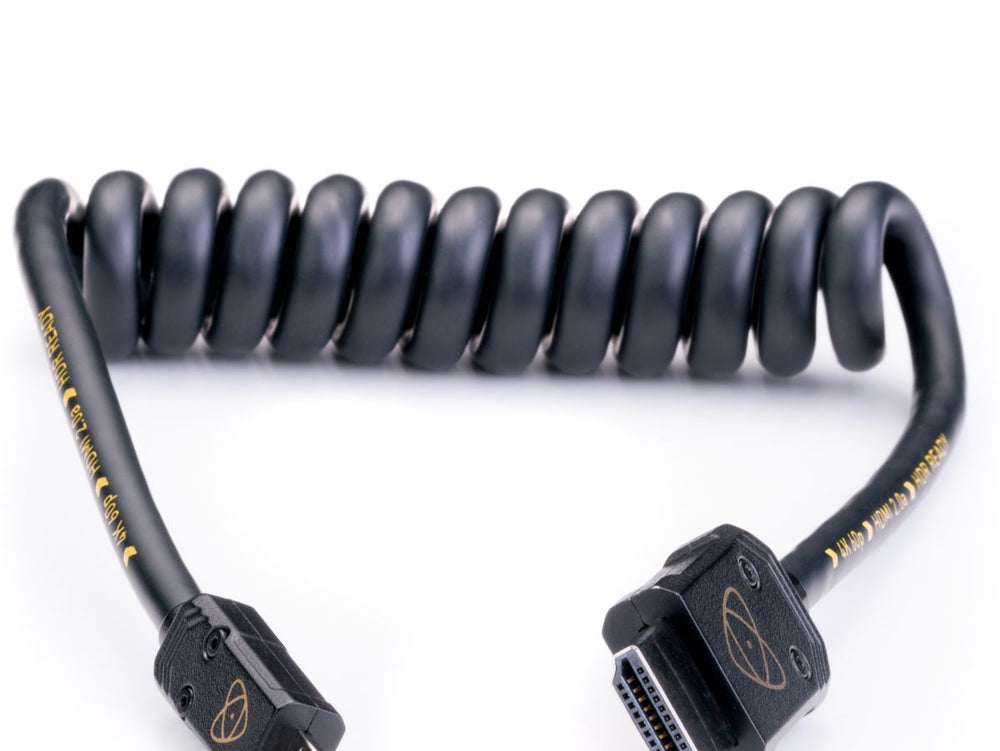 The Atomos HDMI Cable 4K60p C1 30cm is a curled cable with high-quality meta mould connectors promising a seamless connection. It supports HDMI 2.0 signals between two devices, facilitating high-speed video shooting.