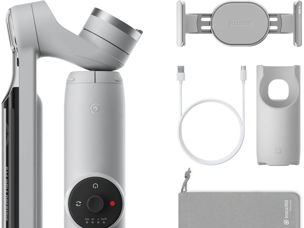 - This bundle not only includes the Insta360 Flow Pro but also a range of supplemental accessories that further boost your creativity. The set comprises of a handy carrying bag for easy transportation, a mini-tripod for grounded shots from any terrain, and an additional battery module for uninterrupted longer recording sessions.