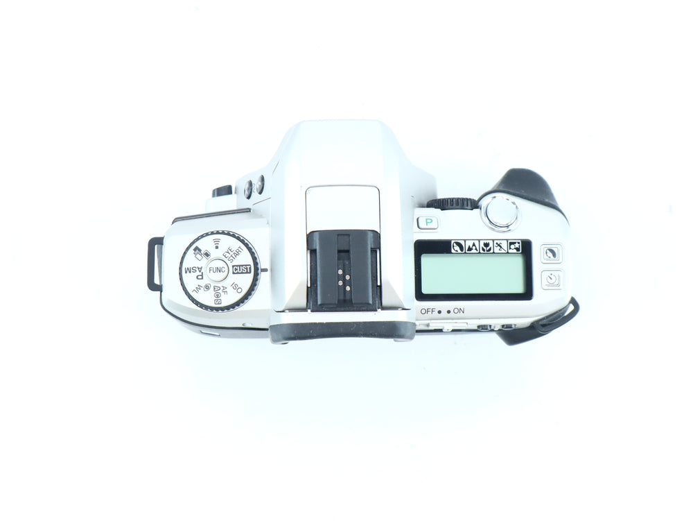 Used – Good condition. The camera body shows minor signs of use. All functions tested and working: autofocus is accurate, shutter and meter respond properly, and flash pops up and fires.