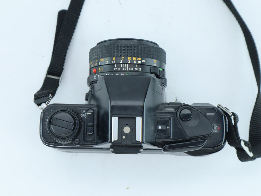 Camera and lens are fully tested and functional. Shutter speeds accurate, meter responds correctly, and lens glass is clean with smooth focus. Minor cosmetic wear from normal use.