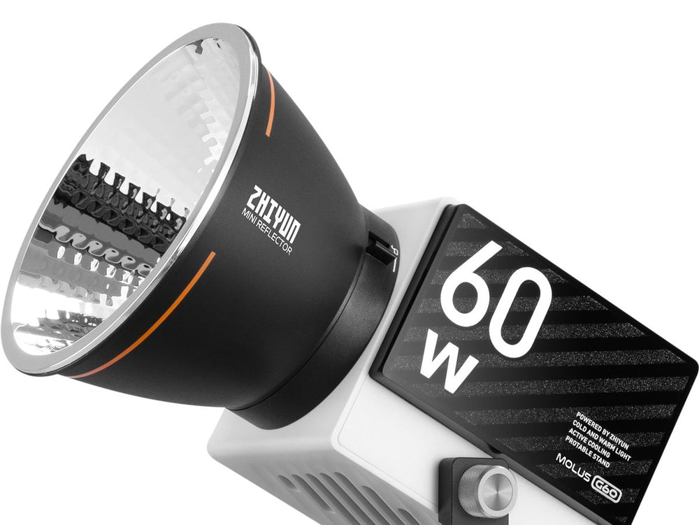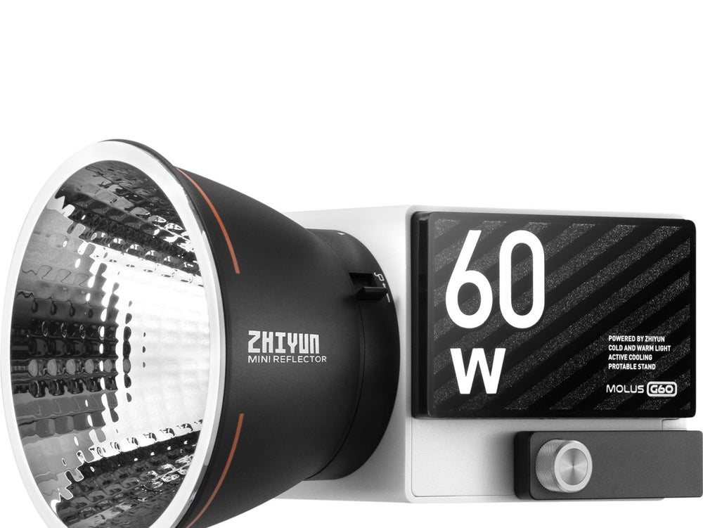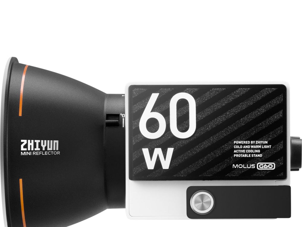 The Zhiyun Molus G60 is a game-changer in the realm of professional lighting, combining a powerful 60W output with an incredibly compact design. Weighing in at just 300 grams, this light challenges traditional COB lamps in both portability and performance.