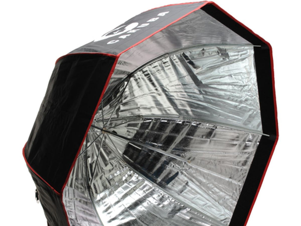 Experience the transformative power of the Caruba Orb 110cm, an octagonal tool that can be employed with your on-camera flash to craft exquisite circular highlights in your subject's eyes. The in-depth structure of the Orb facilitates optimal light distribution that is evenly spread across its entire surface area. Reflect an engaging round highlight in your model's eyes owing to the unique eight-sided shape of the softbox.
