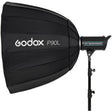 The Godox P90L Parabolic Softbox is a versatile lighting tool designed specifically for photographers seeking to achieve soft, diffused lighting. With a generous diameter of 90 centimeters, this softbox comes with a dedicated speedring compatible with Bowens mount flashes, ensuring a secure fit and easy setup.