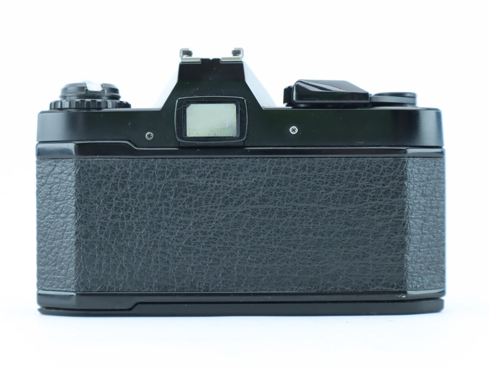Camera powers on (meter not guaranteed accurate), shutter fires at all speeds, and film transport is functional. The lens is clean, with smooth focus and a snappy aperture. Minor cosmetic wear from regular use.
