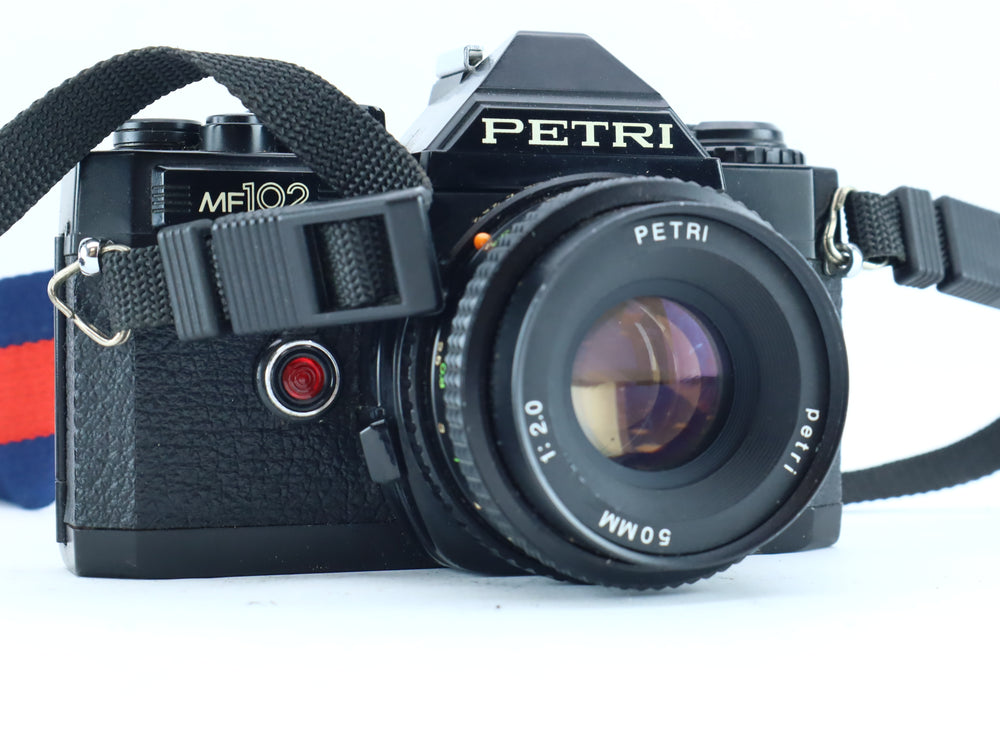 The Petri MF-102 is a reliable and straightforward 35mm manual focus SLR camera from the 1980s, designed for beginner and enthusiast film photographers alike. It features manual exposure controls, through-the-lens (TTL) metering, and a solid metal body. Paired with the Petri 50mm f/2 lens, this kit is ideal for learning the basics of photography or enjoying the tactile feel of mechanical shooting.