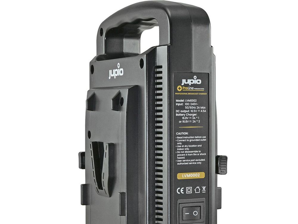The Jupio Portable V-Mount Charger is a versatile device designed to charge two V-Mount lithium-ion batteries simultaneously. This compact charger not only serves as a reliable power source but also features a 75W DC output to power your camcorder or portable video recorder. With intuitive LED indicators located on the side, users can easily monitor the charging status of their batteries. Moreover, it ensures a meticulously controlled charging process, providing a steady flow of power to enhance battery longevity.