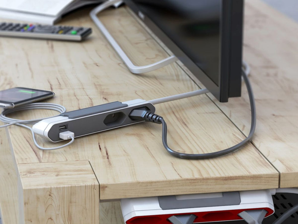 One of the standout features of the PowerBar is its space-saving design, which allows you to mount it effortlessly beneath your desk using the included adhesive bracket. This way, you’ll always have access to four non-earthed outlets right at your fingertips, freeing up desk space while ensuring that your devices remain connected and powered.