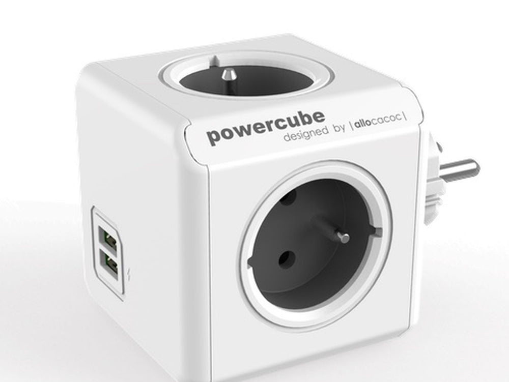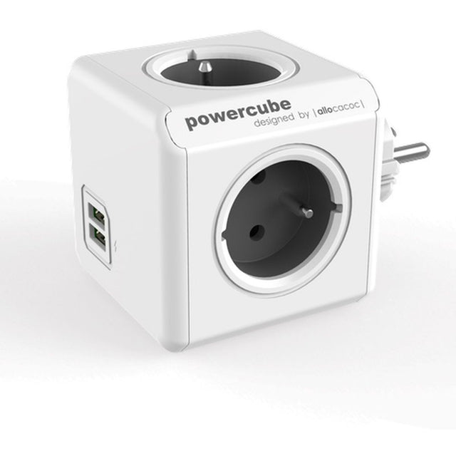 The Allocacoc PowerCube Original USB in Grey (FR) is an innovative solution designed to tackle a common issue often overlooked by many users. Traditional power strips typically align their sockets in a linear configuration, which can be problematic. Even with a 45-degree angle design, some plugs, especially larger adapters, may block adjacent outlets, rendering them unusable. The PowerCube's unique cube shape mitigates this problem by dispersing its sockets across multiple sides, providing easier access.