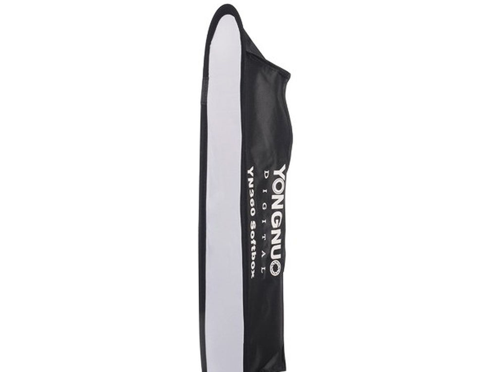 The YN360 Softbox from Yongnuo is custom-designed for popular "light saber" LED lights – specifically, lights from the Yongnuo 360 series. The softbox's primary role is to soften the light emitted by the lamp, eliminating harsh and sharp shadows. The interior walls of the apparatus are lined with a reflective silver coating, while a layer of white diffusion material ensures even light distribution. The set includes a honeycomb grid for channeling diffused light in a specific direction.
