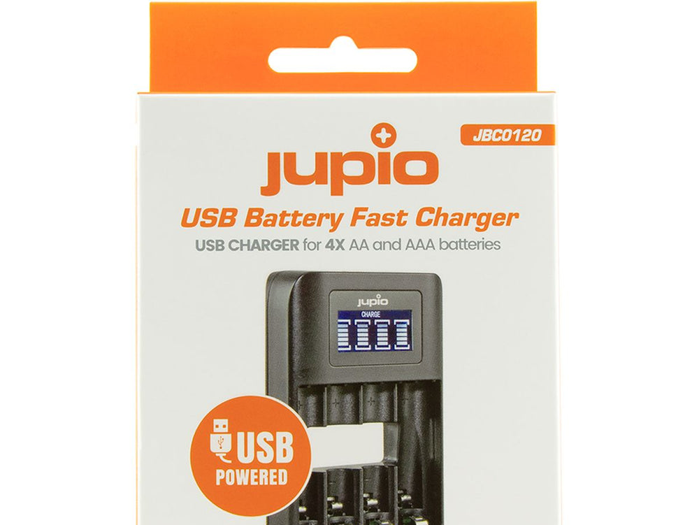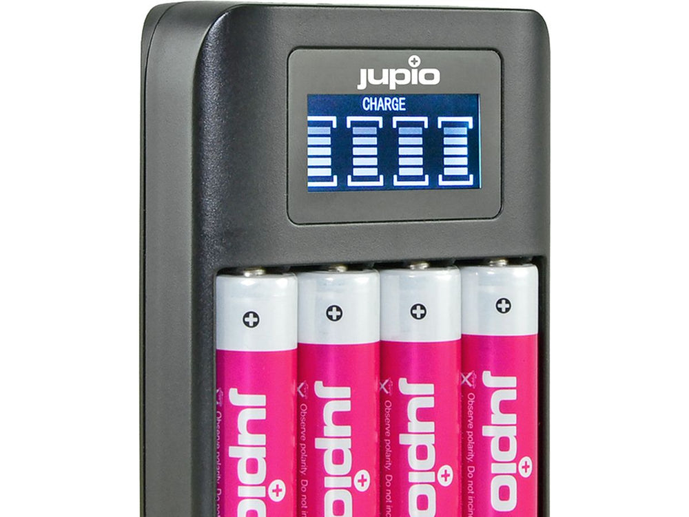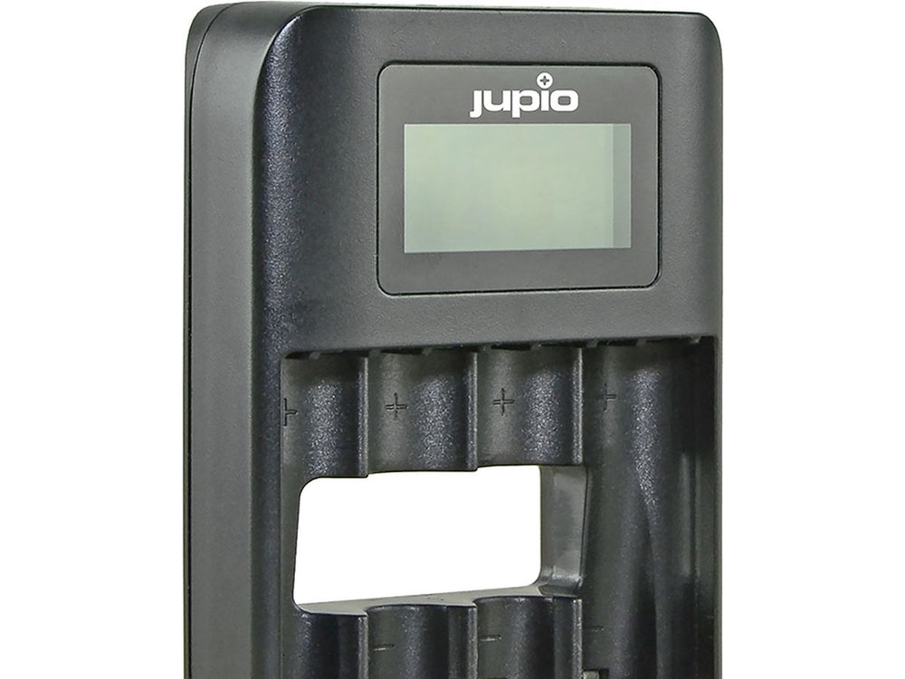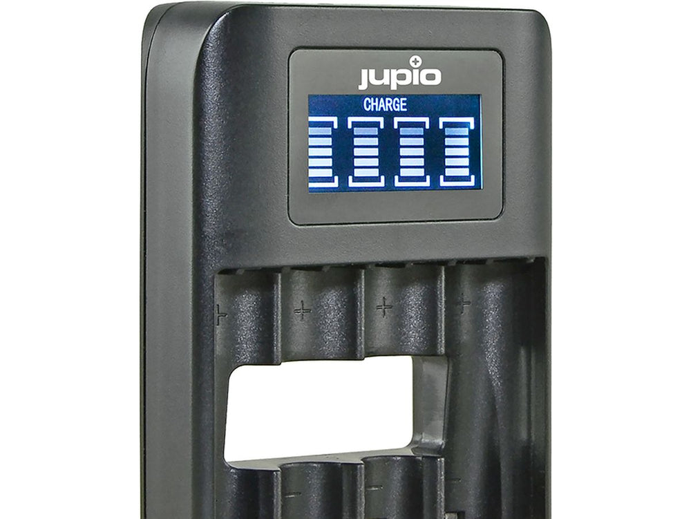 - Jupio USB 4-Slot Quick Charge Battery Charger with LCD Display