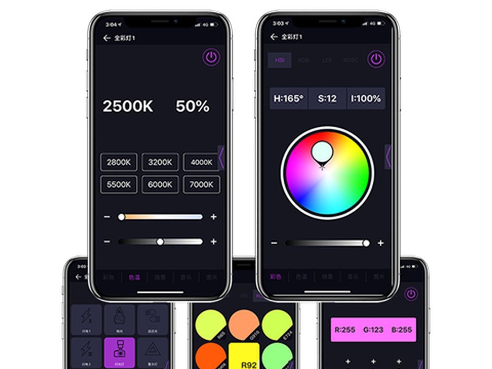 A standout feature of the F7 II is its RGB mode, allowing users to mix colors freely to create the perfect hue. The lamp also comes pre-loaded with settings featuring gel filters from renowned brands like Rosco and Lee. Other creative options include effects like emergency lights, lightning, and colorful strobe lights. You can easily navigate these various settings using the user-friendly OLED display located on the back of the device.