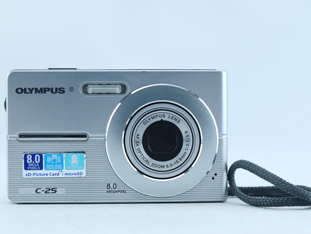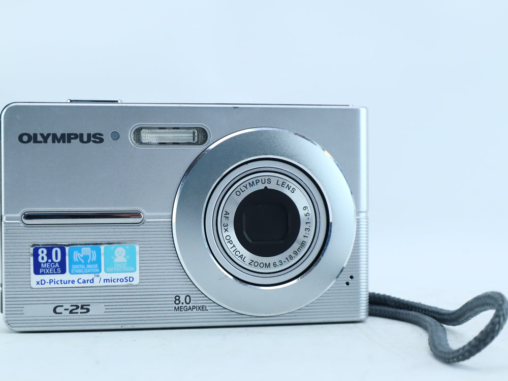 The Olympus C-25 is a compact digital camera featuring an Olympus zoom lens with 3× optical zoom (6.3–18.9mm f/3.1–5.9).