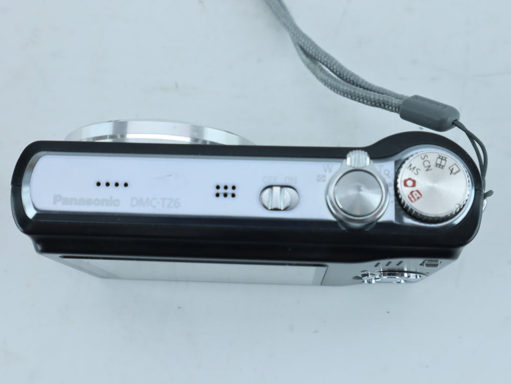 The Panasonic Lumix DMC-TZ6 is a versatile travel zoom camera from Panasonic, equipped with a high-quality Leica DC Vario-Elmar lens. Designed and manufactured in Japan, the TZ6 combines a wide 25mm field of view with a powerful 12x optical zoom, making it ideal for travel, street photography, and everyday use.