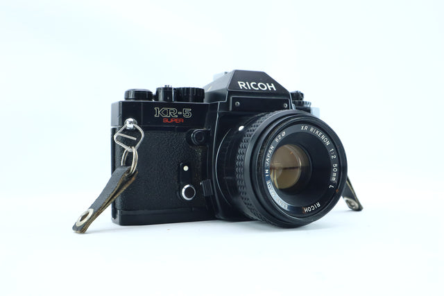 The Ricoh KR-5 Super is a simple, reliable 35mm SLR camera using the Pentax K-mount, making it compatible with a wide range of lenses.