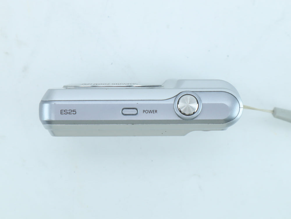 The Samsung ES25 is a straightforward digital compact camera designed for easy everyday photography. It features a Samsung zoom lens 4.9–19.6mm f/3.5–5.0 (27–108mm equivalent) and simple automatic operation. A practical point-and-shoot camera suitable for casual use and travel.