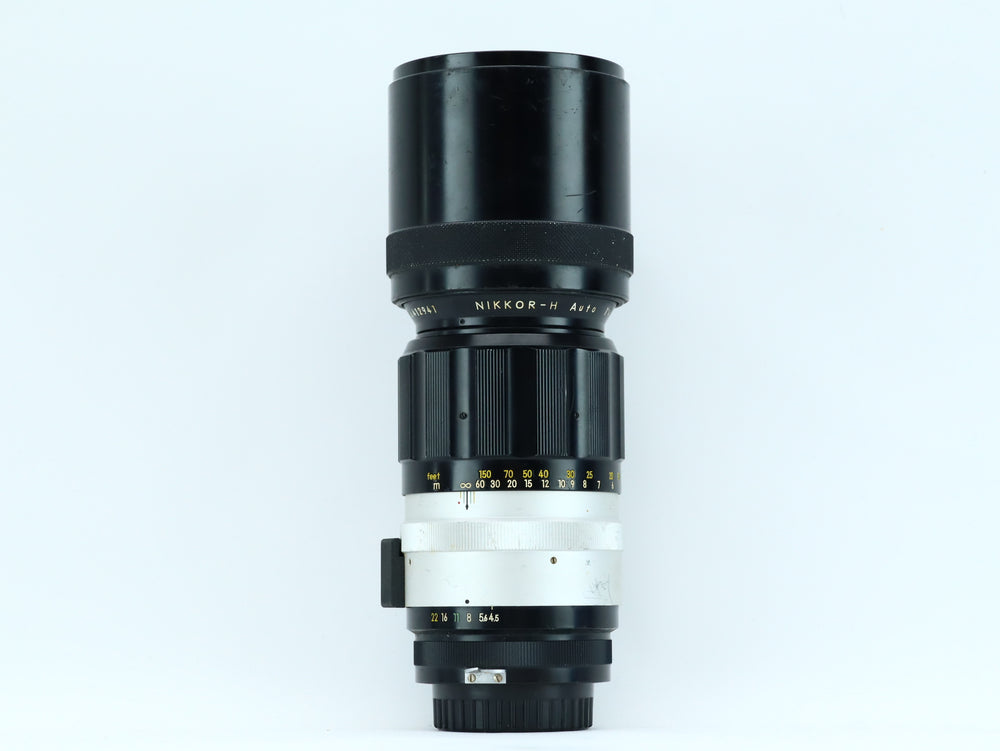 The NIKKOR-H 300mm f/4.5, serial number 412941, is a manual focus telephoto lens from the Nikon F-mount pre-AI era, produced in the late 1960s to early 1970s. The "H" in the name stands for Hexa, indicating a 6-element optical design. This lens is known for its excellent build quality, solid performance, and classic rendering—especially valued by vintage photography enthusiasts and those adapting it to digital systems.