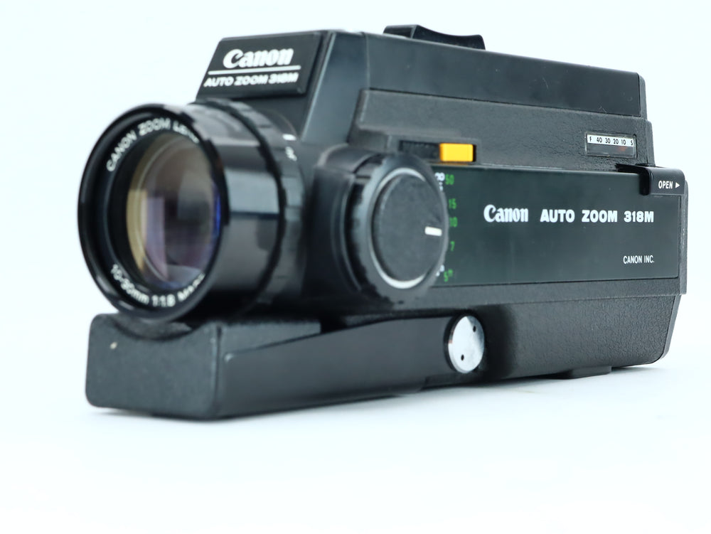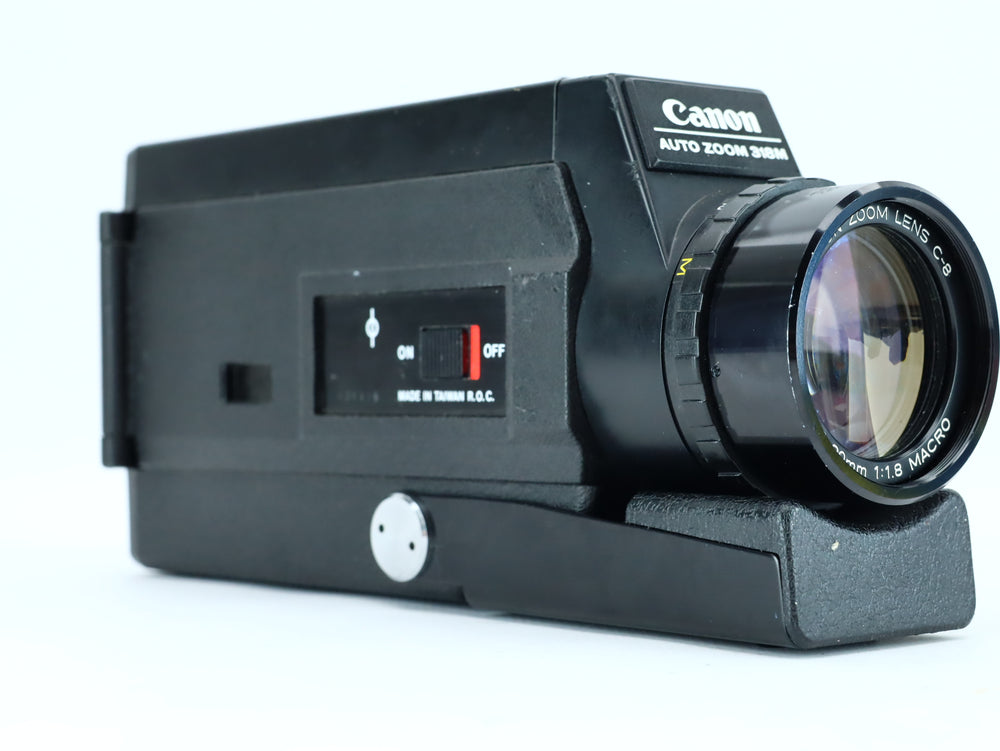 The Canon Auto Zoom 310M is a Super 8 film camera introduced in the early 1970s, designed for amateur filmmakers who wanted professional-level optics in a compact and easy-to-use format. It features a bright Canon Zoom Lens C-8 Macro 10–30mm f/1.8, offering a 3x zoom range with excellent light-gathering ability, as well as true macro focusing for close-up filming.