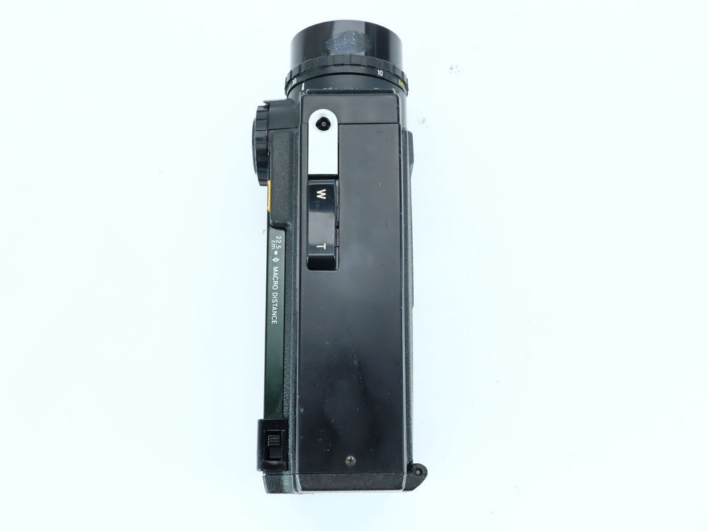 Camera (SN: 606136) is in good cosmetic and functional condition. Zoom and focus mechanisms operate smoothly. Viewfinder is clear. Lens is clean — no haze or fungus. Battery compartment is clean. Light meter responds to light (battery not included). Some minor wear consistent with age, but no major defects.