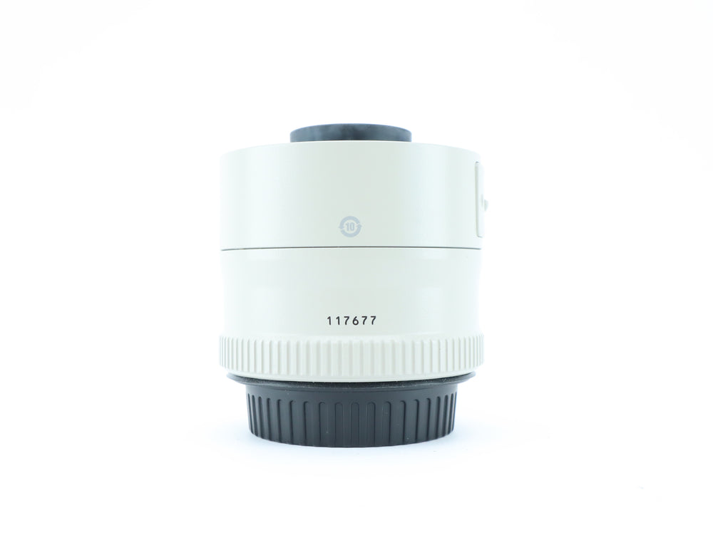 The extender shows minor cosmetic wear from normal use. Optics are clean, with no haze or fungus. Mounts securely on both lens and camera, and communication functions are tested and working.