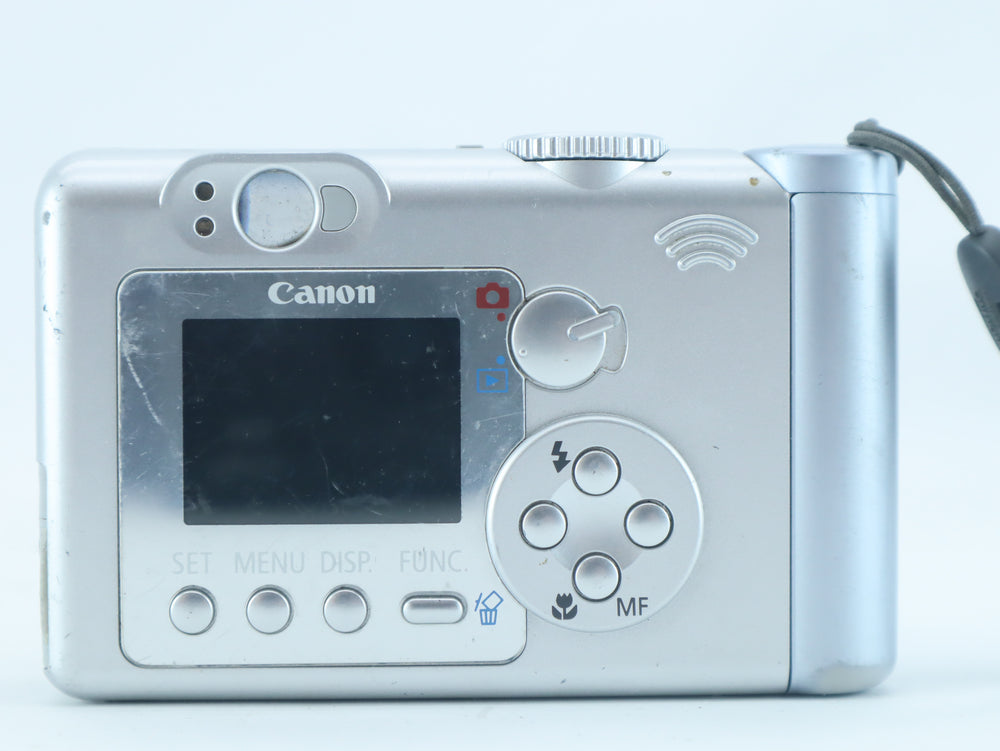 This Canon PowerShot A60 with serial number 63220903024 is a compact and user-friendly digital camera equipped with a 2.0 megapixel sensor and Canon’s AI AF system for reliable autofocus. Designed for ease of use, it features a versatile built-in zoom lens, simple menu navigation and a solid grip, making it suitable for beginners, families and collectors of early digital cameras.
