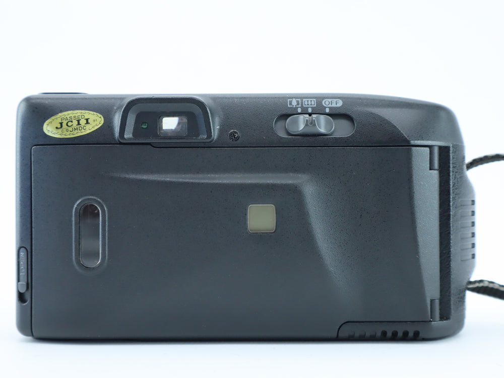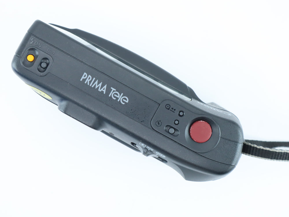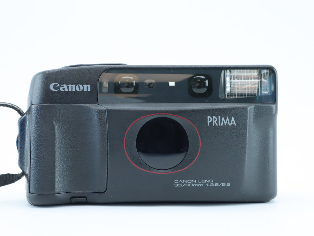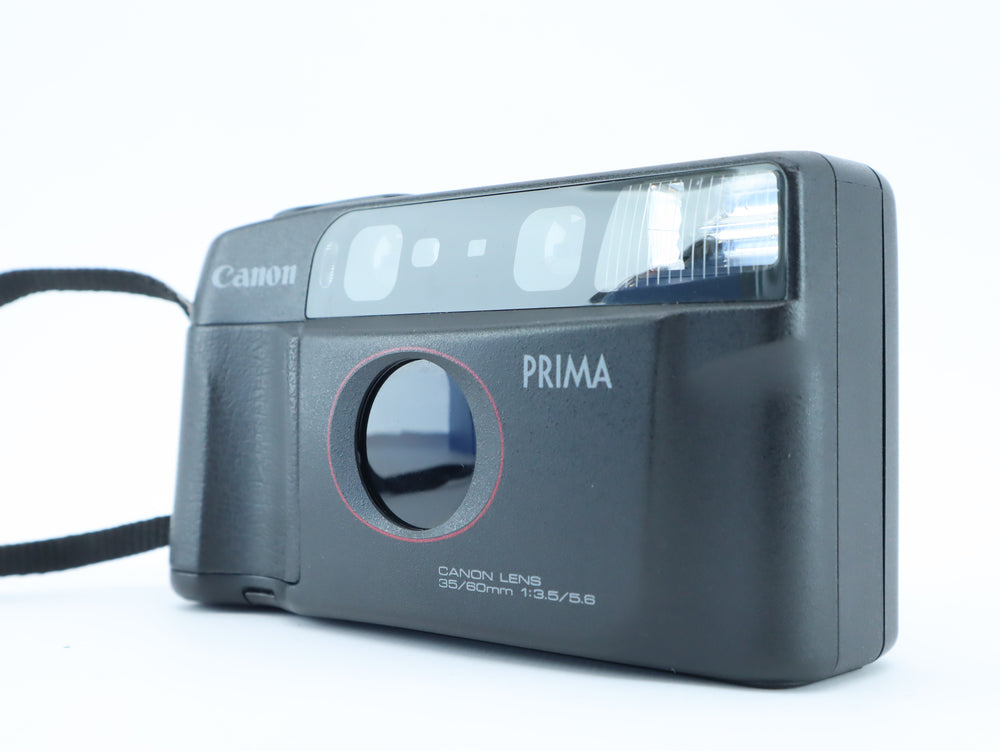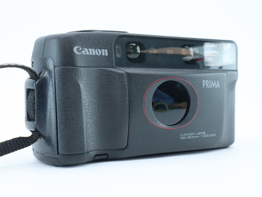 The Canon Prima Tele is a 35mm point-and-shoot film camera featuring a dual focal length lens system, allowing you to switch between 35mm wide-angle and 60mm short telephoto at the push of a button. Designed for ease of use, it offers autofocus, automatic exposure, and a built-in flash—making it an ideal choice for casual photographers and beginners.