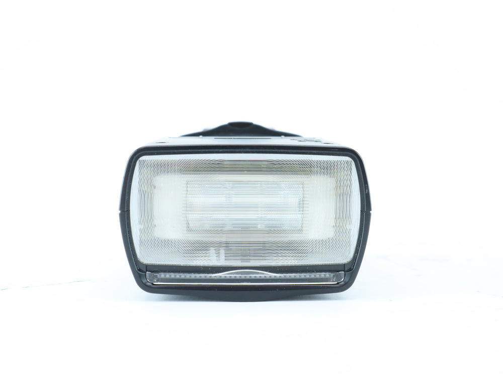 Flash shows light cosmetic wear. Tested and fully functional. Flash fires consistently, zoom mechanism and control buttons work properly. Battery contacts are clean.