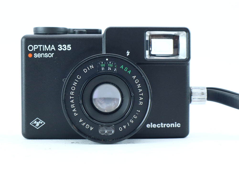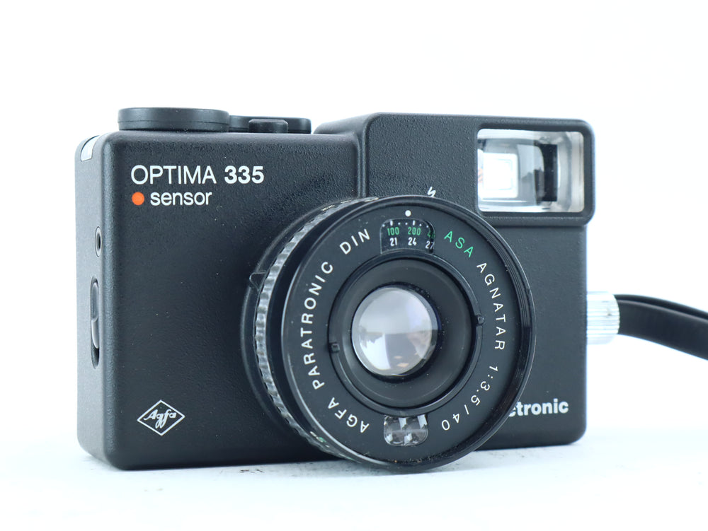 The Agfa Optima 335 Sensor Electronic is a sleek and simple-to-use 35mm compact camera known for its reliable automatic exposure and distinctive red “Sensor” shutter button. Designed for easy point-and-shoot photography, it’s an ideal travel companion or introduction to analog photography, especially for those who appreciate vintage German design.
