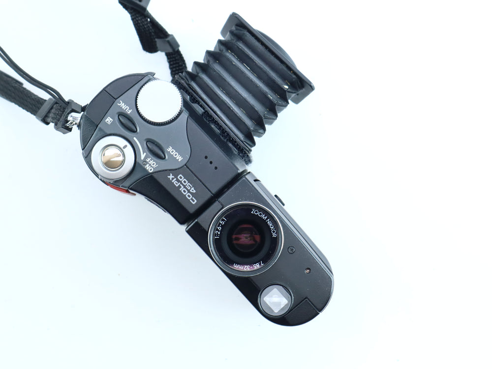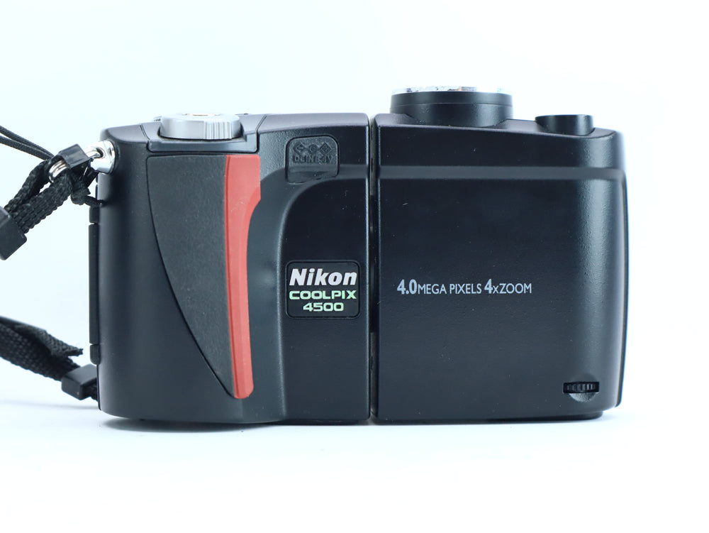 The Nikon Coolpix 4500 (S/N: 4565013) is a legendary icon of early digital photography, celebrated for its unique ergonomic "swivel-body" design. This ingenious construction allows the lens section to rotate independently of the LCD screen, enabling effortless shooting from extreme high or low angles while maintaining a clear view of the composition. Featuring a high-quality 4.0 Megapixel CCD sensor and a 4x Optical Zoom Nikkor lens, the 4500 is particularly world-renowned for its extraordinary macro capabilities, allowing for sharp focus at a distance of just 2cm. With its robust magnesium alloy chassis and full manual exposure controls, the Coolpix 4500 remains a favorite for scientific, medical, and creative macro photographers who value tactile precision and a distinct "analog-digital" character.