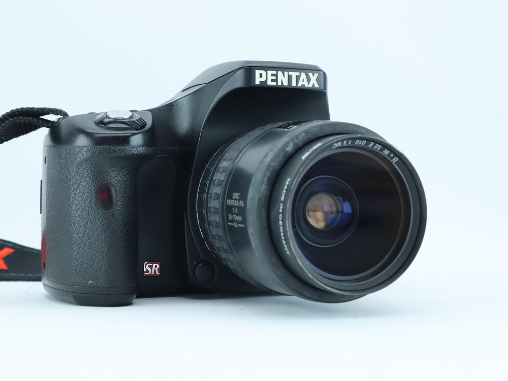 Condition Report Good condition. The camera body (S/N: 3047664) shows normal signs of light use and minor cosmetic surface wear consistent with its age. The weather seals are intact and the 10.2MP CCD sensor is clean. The Pentax FA 28-70mm f/4 lens (S/N: 4375812) is optically clear, free from fungus, haze, or significant scratches. The autofocus and Shake Reduction systems have been tested and are fully operational. All buttons, dials, and the top-plate status LCD are working correctly. The battery compartment is clean and free of corrosion.