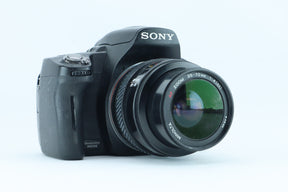 The Sony α390 (S/N: 4855841) is a powerful and user-friendly DSLR that stands out for its high-resolution 14.2-megapixel CCD sensor. Highly regarded by enthusiasts, CCD sensors are known for their superior color depth and "film-like" rendering compared to modern CMOS alternatives. The α390 features an updated, ergonomic grip and a 2.7-inch tilting LCD screen, which, combined with Sony’s Quick AF Live View, allows for fast and accurate shooting from creative high or low angles. Paired with the legendary Minolta AF 35-70mm f/4 "Little Beercan" zoom lens (S/N: 1024661), this kit offers exceptional optical quality. The lens is famous for its constant f/4 aperture and robust metal construction, providing a professional feel and consistent exposure across the entire zoom range.
