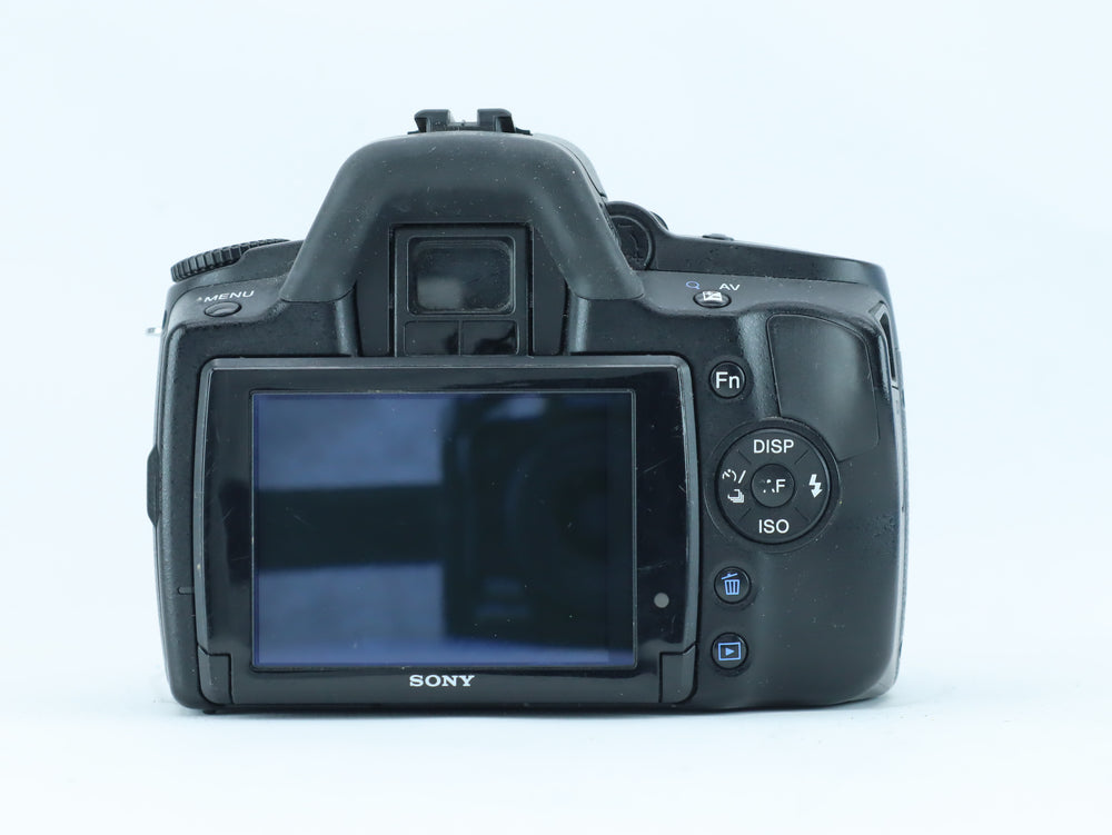 Condition Report Good condition. The camera body (S/N: 4855841) shows normal signs of light use and minor cosmetic surface wear consistent with its age. The 14.2MP CCD sensor is clean and free from scratches. The Minolta AF 35-70mm f/4 lens (S/N: 1024661) is optically clear, free from fungus, haze, or significant scratches. The autofocus and SteadyShot INSIDE systems have been tested and are fully operational. The tilting LCD mechanism is firm and the display is bright. All buttons and dials function correctly.