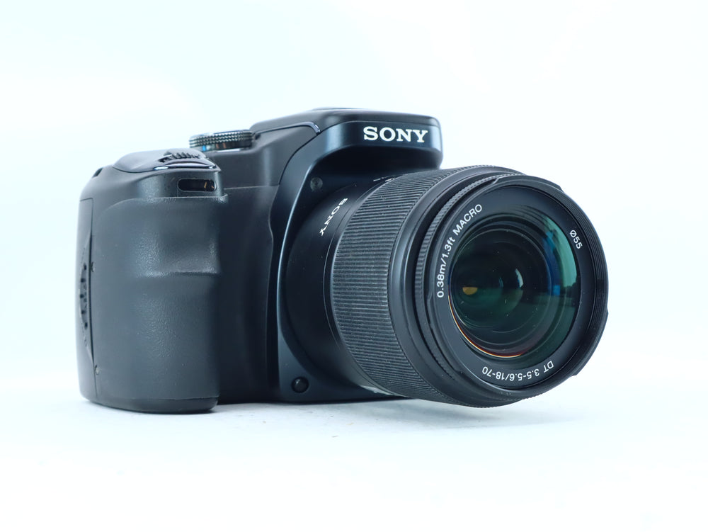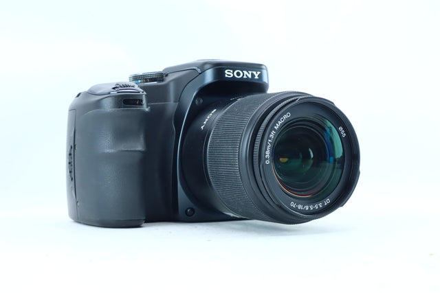 Condition Report Good condition. The camera body (S/N: 1990960) shows normal signs of light use and minor cosmetic wear on the rubber grip. The 10.2MP CCD sensor is clean. The 2.5-inch LCD is clear and fully functional. The Sony 18-70mm Macro lens (S/N: 2269046) has clear optics, free from fungus or haze, and the autofocus and zoom mechanisms operate smoothly. Fully tested and operational at all factory settings.