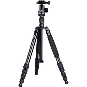 The Sirui Traveller T-1005 tripod equipped with an E-10 ball head is both versatile and portable, perfect for travel. One leg can be unscrewed and converted into a fully equipped monopod, with a maximum height of 160 cm in combination with the provided E-10 ball head. In addition, the head contains a water level for quick alignment and 90° notch for vertical camera orientation.