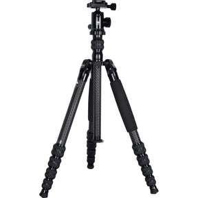The Sirui Traveller T-1205 + E-10 is a tripod that includes a ball head, providing versatile, compact, and lightweight equipment perfect for traveling photographers. It can support loads of up to 8 kg and can reach a maximum height of 163 cm. The tripod's reverse-folding legs allow for compact storage and transport, shrinking its size to a tidy 43 cm and weighing just 1.5 kg. The T-1205 also includes a full-length center column and a short center column for low-level or macro photography.