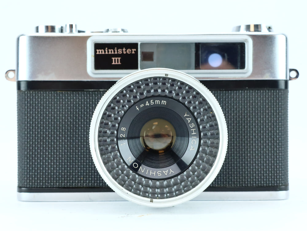 The Yashica Minister III is a well-built Japanese rangefinder from the mid-1960s, offering a bright viewfinder and a fixed Yashinon 45mm f/2.8 lens. Known for its straightforward operation and reliable build, the camera features a coupled rangefinder, full manual controls, and a built-in selenium light meter that doesn't require batteries.