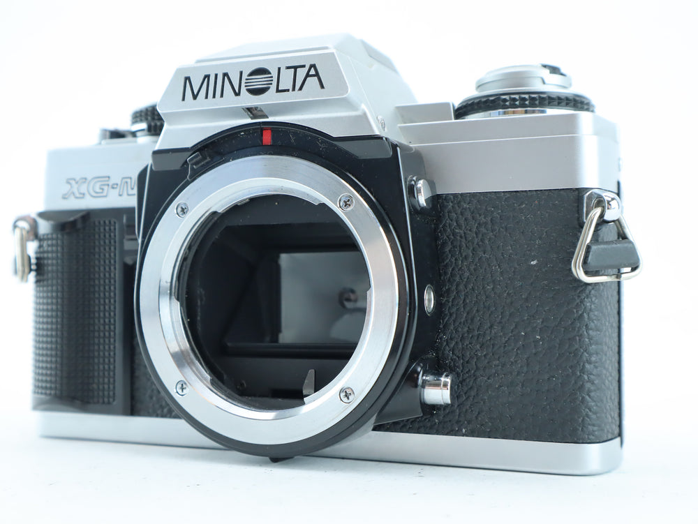 The Minolta XG-M is a 35mm single-lens reflex (SLR) camera from the early 1980s, known for its blend of manual control and automatic exposure modes. As part of Minolta's XG-series, the XG-M features aperture-priority auto exposure, a bright viewfinder with LED indicators, and a compact, lightweight body, making it an excellent choice for both beginner and experienced film photographers.