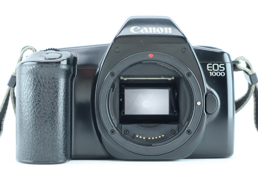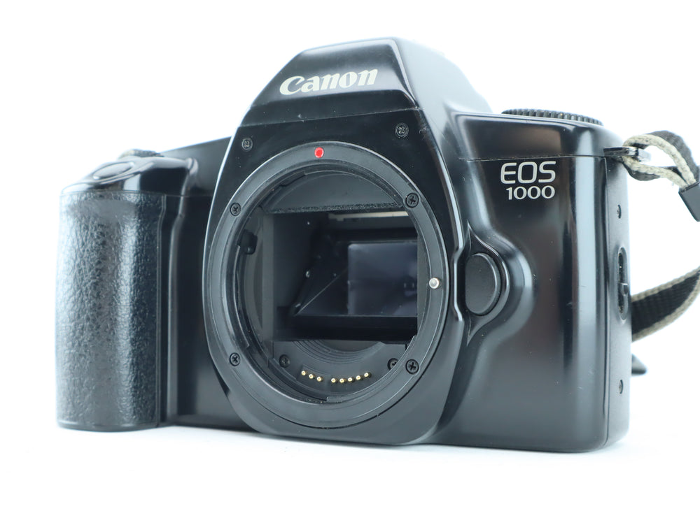 The Canon EOS 1000 (also known as the EOS Rebel in some markets) is a user-friendly 35mm film SLR camera, designed for beginners and enthusiasts seeking an affordable yet capable introduction to film photography. Featuring automatic focus and exposure settings, as well as manual controls, the EOS 1000 provides flexibility and ease of use. Compatible with Canon's extensive EF lens lineup, this camera offers endless creative possibilities while delivering sharp, high-quality images.